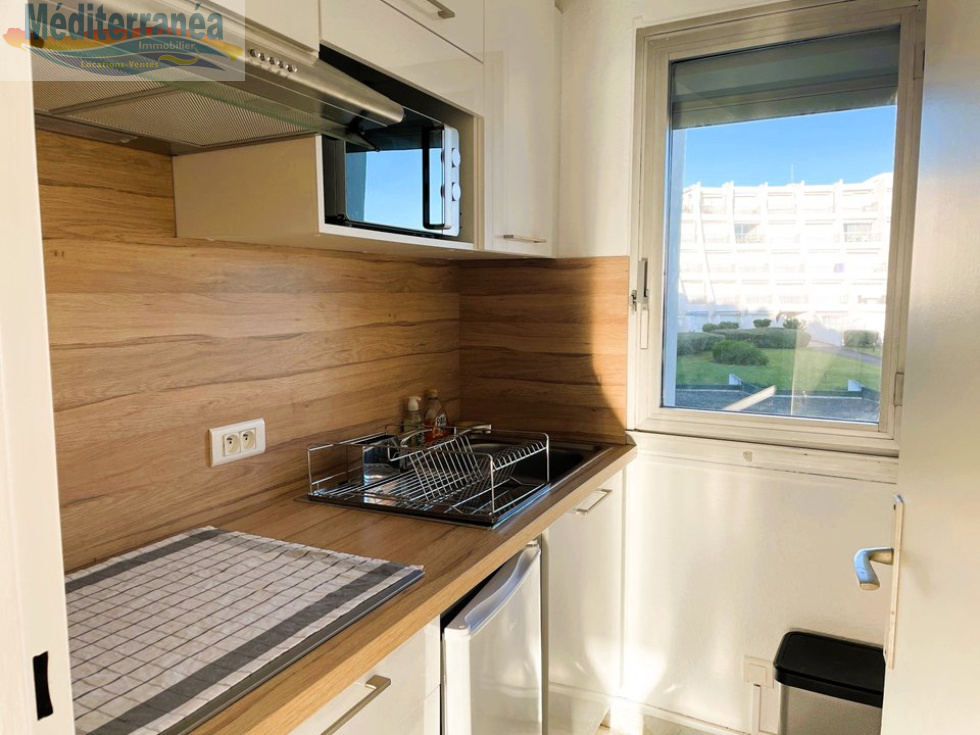 La Grande Motte , tout au début de la Motte du Couchant, au sein d'une résidence avec piscine , vous allez adorer cet appartement 2 pièces pour 3 couchages. Vous serez au plus près de la plage et donc de la mer, sans aucune route à traverser, des commerces, des restaurants et des grandes surfaces. Autrement dit vous êtes au plus prés de tout sans en avoir les inconvénients ! L'appartement est spacieux, très lumineux , traversant, parfaitement agencé et parfaitement équipé . La cuisine avec fenêtre orientée au nord est séparée, la chambre avec fenêtre pour une personne est également au nord, salle d'eau avec WC, belle pièce de vie ouverte sur la jolie loggia en sud face à la mer. Vous pourrez ainsi profiter d'une très belle vue aussi bien reposante que dépaysante notamment face à des couchers de soleil éblouissants ! L'appartement est très fonctionnel et idéal pour de belles vacances en bord de mer. Des parkings sont situés à proximité et celui à l'entrée de ville est immense et gratuit. De belles vacances en perspective ! Au plaisir de vous accueillir dans notre belle station....!