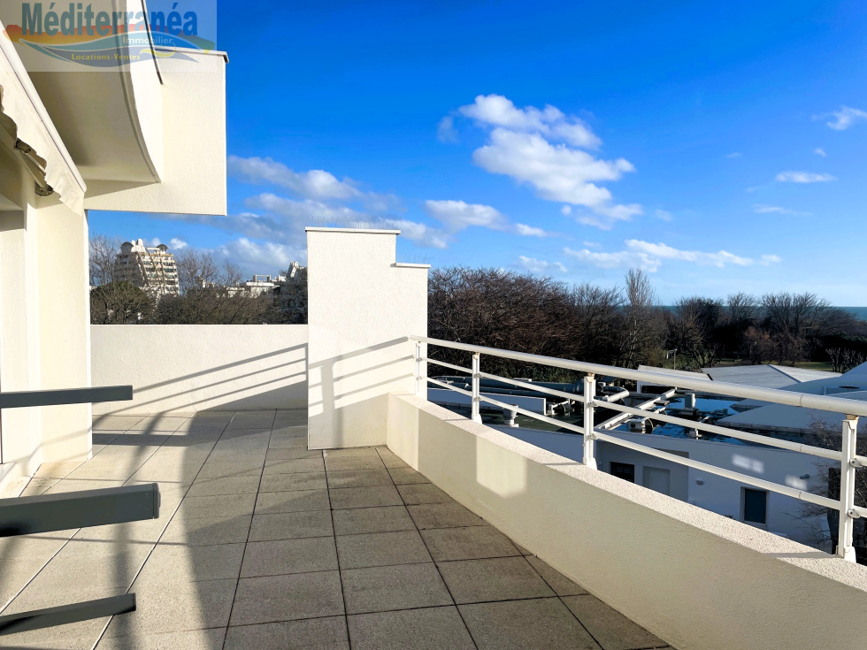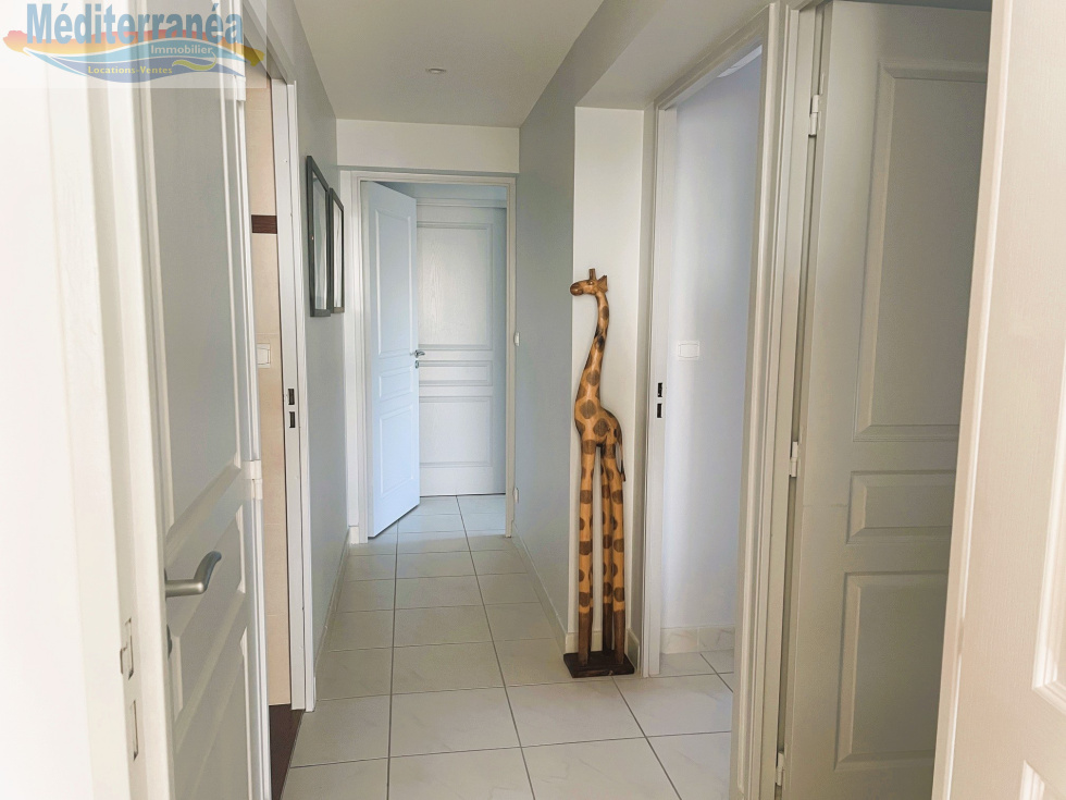 EXCLUSIVITE . Motte du Couchant. Vous serez séduit par ce magnifique appartement de 4 pîèces - 3 chambres - situé au dernier étage d'une résidence de standing, sécurisée, avec ascenseur allant du garage jusqu'à l'accès de l'appartement, parfaitement entretenue et très proche de la plage. La rareté du BIEN est à souligner : 105M² carrez répartis en une partie jour et une partie nuit . Une terrasse de plus de 78M² fait le tour de l'appartement , ce qui fait que chaque pièce a un accès direct sur celle-ci et qu'à chaque moment de la journée vous bénéficiez au choix du soleil ou de l'ombre ! L'agencement est idéal : unne belle entrée , un salon séjour très lumineux ouverts sur la cuisine parfaitement équipée totalisant près de 50M² !! Une arrière cuisine permet de mutiplier les rangements et d'y entreposer les machines tels que congélateur , machine à laver le linge etc.. La partie nuit est composée de 3 grandes chambres avec chacune ses grands placards. L'une de ces 3 chambres est une suite parentale avec salle de bain dotée d'une fenêtre: baignoire, double vasque et wc séparés. Indépendamment de la suite parentale, il a été prévu 2 salles d'eau , et un WC indépendants. L'appartement est extrêmement lumineux, doté de toutes les prestations : volets électriques, bonnes solaires électriques, double vitrage , climatisation dans chaque chaque pièce ...La terrasse est superbe et vous permet de profiter d'une vue dégagée sur la mer . Le garage de 40 M² est un atout certain et fait bien des envieux... , bien entendu avec l'appartement est aussi vendue la place de parking privative.Voilà un BIEN exceptionnel que j'aurai plaisir à vous faire présenter. Vous souhaitez visiter ? merci de me contacter: Béatrice Dumont : 06.60.90.12.09.