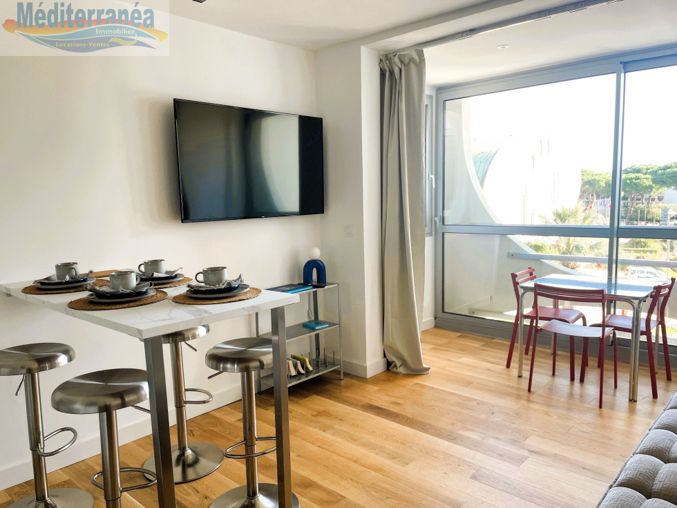 LA GRANDE MOTTE, à deux pas du Port , de tous les commerces, et à 10 minutes à pieds de la plage ce STUDIO, avec sa chambrette, de plus de 33M² habitables est un vrai coup de coeur !!! Situé au sein d'une résidence prisée, avec ascenseur et ravalement refait , ce STUDIO a été superbement refait, repensé et optimisé ! Son agencement est parfait : une vraie entrée, une belle salle d'eau avec branchement lave-linge , douche WC, un vaste placards 2 portes dans l'entrée, miroir de pied en cap.., la chambrette avec un lit en 140cm et des rangements comme nous en révons tous...,puis la partie jour : vaste pièce avec cuisine superbement équipée loggia pleinement intégrée . Ce petit appartement mérite vraiment toute votre attention, très lumineux grâce à sa double ouverture sur la loggia, les prestations y sont vraiment de qualité : porte à galandage, double vitrage, parquet, cuisine superbement équipée : lave-vaisselle - four .... Aucun défaut de réalisation, et une réalisation fignolée !!! ce qui est assez rare... Le BIEN est vendu avec sa place de parking privative. Vous souhaitez visiter ? je me tiens à votre disposition : Béatrice DUMONT : 06.60.90.12.09